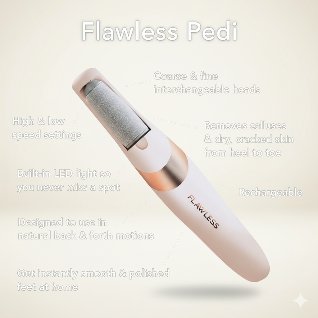 Enjoy salon-quality results from the comfort of your home with the Electric Foot & Skin Smoother, designed to gently remove rough, dry, and cracked skin — instantly and painlessly.
